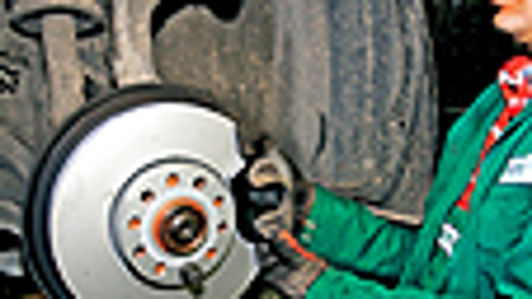 Poza ekstremalnie tandetnymi produktami większość "nasadek" sprawdzi się. Odradzamy natomiast najtańsze klucze płaskie, mogą się złamać i poranić nam ręce. Przydadzą się: sprej penetrujący (kilkanaście zł) pomocny przy demontażu i smar miedziowy (kilkadziesiąt zł), który uchroni śruby przed zapieczeniem. Potrzebny będzie solidny klucz do kół (dostępny na stacjach benzynowych za 30-50 zł) z dużym ramieniem. Nie obejdzie się bez wygiętej, miękkiej szczotki drucianej i dużego śrubokręta. Z profesjonalnych narzędzi przydatnych przy wymianie klocków hamulcowych wymienić należy specjalny przyrząd do cofania szczęk, niestety dostępny w kosztownych zestawach (od ok. 200 zł). UWAGA! O ile tłoczki przednich zacisków da się cofnąć bez tego przyrządu, o tyle z tyłu (w niektórych autach, np. Citroënach z hamulcem ręcznym działającym na przednie koła również z przodu!) trzeba je cofać i obracać jednocześnie. Nie radzimy robić tego samemu. Garaż czy serwis?Wymiana klocków hamulcowych w autoryzowanych serwisach to koszt ok. 100-200 zł. Chcąc zrobić to we własnym zakresie, musimy kupić narzędzia i akcesoria za porównywalną kwotę. Najbardziej opłacalne jest skorzystanie z usług sieci niezależnych serwisów, jak np. Shell Autoserv, gdzie montaż zakupionych na miejscu części bywa wliczony w ich cenę. Jeśli zdecydujemy się na samodzielną wymianę, należy być przygotowanym na trudności. Pierwszą z nich mogą być zapieczone śruby sworzni zacisku hamulcowego. Można je potraktować sprejem penetrującym (np. WD-40), ale tylko jeżeli to naprawdę konieczne i w niewielkiej ilości. Nie zapominajmy o odłączeniu przewodów czujnika zużycia klocków, o ile nasze auto taki ma. Bardzo ważne jest dokładne oczyszczenie stalową szczotką zacisku przed montażem nowych klocków. Nieoczyszczony nalot może uniemożliwić ich montaż! Przed włożeniem klocków trzeba rozeprzeć tłoczki zacisku, wystarczą do tego dwie deski włożone między tłoczek a zacisk. Nowe klocki są znacznie grubsze niż te zużyte i trzeba zrobić dla nich więcej miejsca w zacisku.