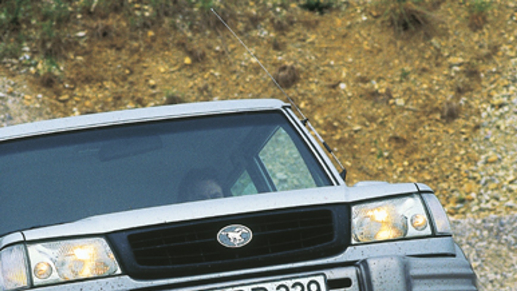 Terenówka Hyundaia występowała tylko w wersji zamkniętej, 3- lub 5-drzwiowej. Odmianę dłuższą często oferowano z dodatkowym rzędem siedzeń lub - przeciwnie - jako 2-osobowego vana. Do zalet karoserii zaliczymy wysoką praktyczność (5d) oraz bardzo dobre wyposażenie wewnętrzne. Często znajdziemy drewnopodobne wykończenie, klimatyzację, airbag (ale tylko kierowcy), "elektrykę" szyb, podłokietniki, a nawet skórzaną tapicerkę. Minusy? Po pierwsze, trochę za mało miejsca dla pasażerów (jak na gabaryty). Po drugie, zbyt małe pokrewieństwo z protoplastą, przez co trudniej o części zamienne. Błotniki, reflektory, elementy tapicerki - po te elementy często udawać się trzeba do ASO Hyundaia lub na szrot. Z drugiej strony po karoserii Gallopera nie rozpoznamy "staruszka", pełno tu modnych, plastikowych nakładek.Solidna technika, przyzwoita trwałośćSilnik 2.5 TD to już niemal wierna kopia jednostki Mitsubishi. Występował w dwóch wariantach: 88 lub 100 KM. Mocniejszy (choć i tak niezbyt dynamiczny) wyróżnia się głównie obecnością intercoolera w układzie dolotowym. Spalanie udaje się utrzymać na dobrym poziomie - nawet poniżej 10 l/100 km. Liczyćmożna na większą współzamienność części z Mitsubishi. Przestrzegać trzeba regularnej wymiany paska rozrządu oraz paska napędu wałków wyrównoważających (równocześnie!). Jednostka napędowa czuła jest na przegrzanie (efekt - przepalenie uszczelki pod głowicą). W układzie napędowym znajdziemy najprostsze rozwiązanie, czyli stały napęd tylnej osi z dołączanym na sztywno przodem oraz reduktor. W zawieszeniu samochodu stosowano równolegle zarówno sprężyny, jak i resory piórowe. Sugerujemy poszukiwanie egzemplarza na sprężynach, niestety "długi diesel" spotykany jest częściej z resorami. Podwozie ma stosunkowo dużą trwałość, ale i tu większość elementów zmodyfikowano w stosunku do Pajero i poszukiwania części ograniczają się do sprzedawców Hyundaia (znajdziemy też zamienniki).