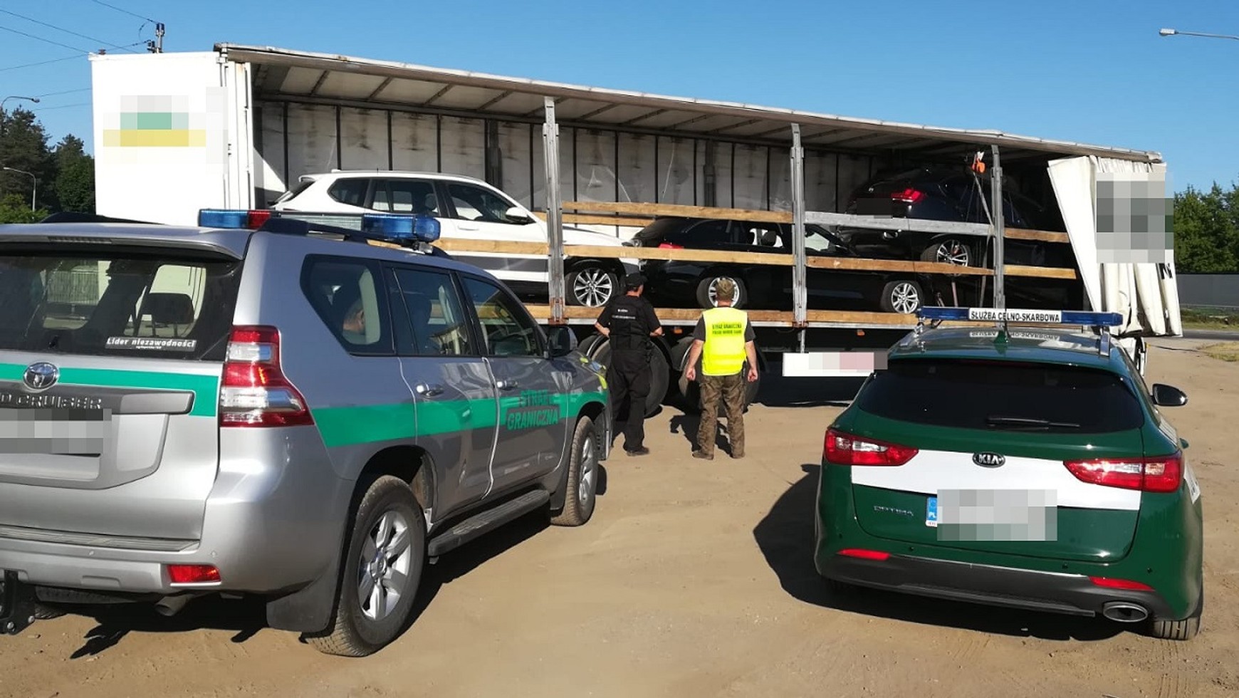 Zatrzymany kierowca, obywatel Litwy w naczepie przewoził trzy samochody osobowe marki BMW na niemieckich tablicach rejestracyjnych. Okazało się, że wszystkie pojazdy figurują w Systemie Informacyjnym Schengen jako utracone na terenie Niemiec. Łączna szacunkowa wartość BMW X3 z 2014 roku, BMW X5 z 2016 roku oraz BMW 320D z 2017 roku wynosi 720 tys. zł.