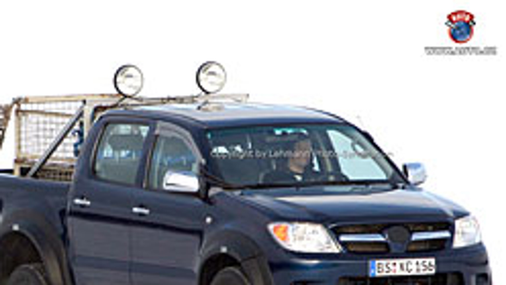 Na pierwszy rzut oka chodzi o Toyotę Hilux, jednak po dokładnym przeanalizowaniu zdjęć zauważymy, że coś tu nie gra. Poszerzone nadkola i tablice rejestracyjne z Brauschweigu (gdzie znajduje się ośrodek rozwojowy Volkswagena) pozwalają sądzić, że tak na prawdę jest to muł testowy nowego VW Robust.